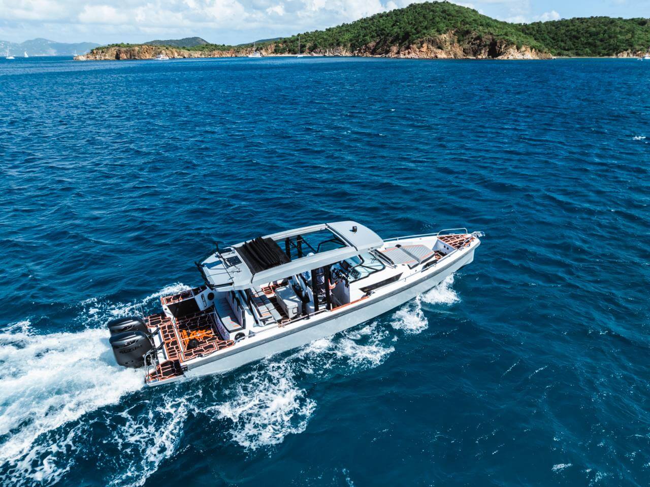 The experience is centered around a sleek 37’ Axopar Suntop Edition, powered by twin 300HP Suzuki engines.
